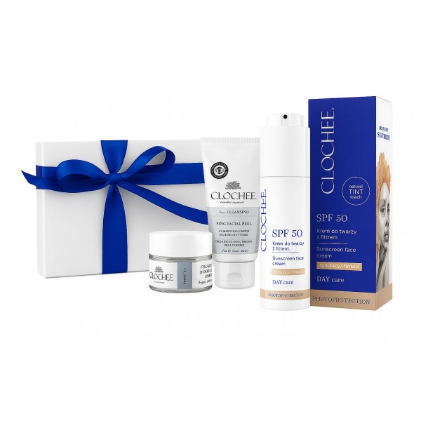 Set 2+1: Пигментирана спф 50 + хидратантна крема, Бустер маска за лице+ Пилинг за лице подарок